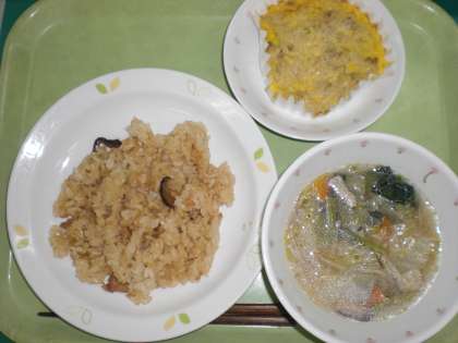 「ちゅうかおこわ、きりぼしだいこんのたまごやき、ちゅうかスープ、牛乳」です。
