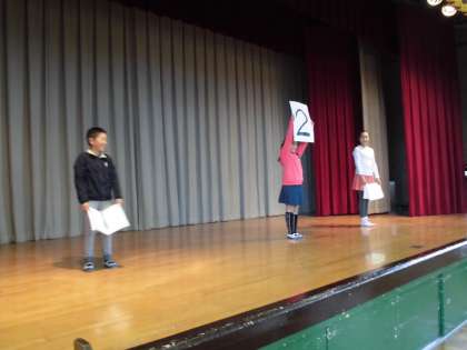 児童集会で3択クイズをしました。