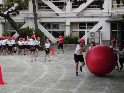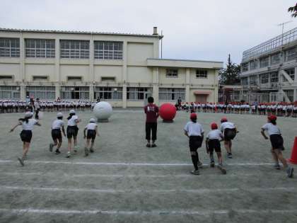 大玉送りの練習をしました。今日は2回とも赤組が勝ちましたが、本番ではどうなるか、楽しみです。