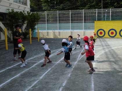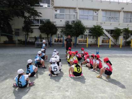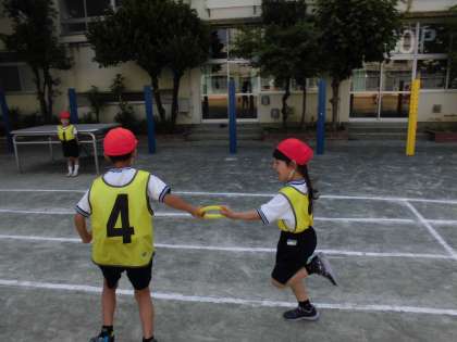 朝練がんばっています。特に1年生はなれないバトンパスを2,3年生に教わりながら練習しています。