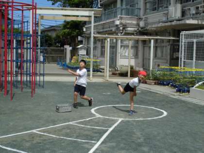 昨日できなかったソフトボール投げを行いました。最近はなかなかボールを投げる場所も少なくなり、苦手な子どもが多いようです。朝スポや中休み、昼休みなど少ない時間を活用していってほしいです。