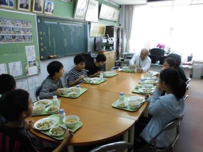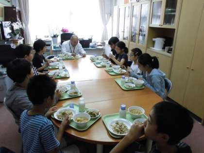 今日から校長室会食が始まりました。6年生から順番にグループで校長室に来ます。なかなか入ることのない校長室ですが、校長先生との食事を楽しんでいます。