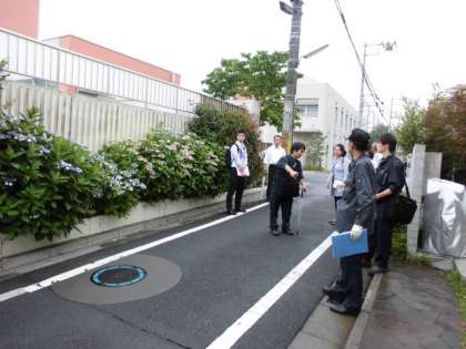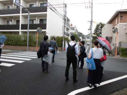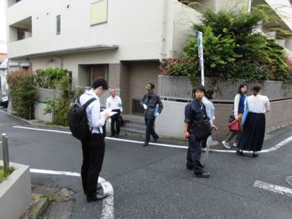 今日はPTA校外委員さんと警察と区役所の方と通学路点検をしました。みなさんの通学路が安全か確認し、危険な箇所について検討をしました。