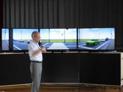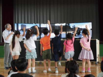 2年生と4年生が交通安全シュミレーターによる交通安全教室を行いました。実際に横断歩道を渡るときの注意点について学びました。