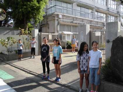 今週は6年生が正門で大きな声であいさつをしています。