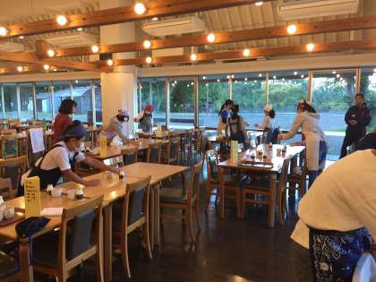食堂では食事係が準備を始めました。