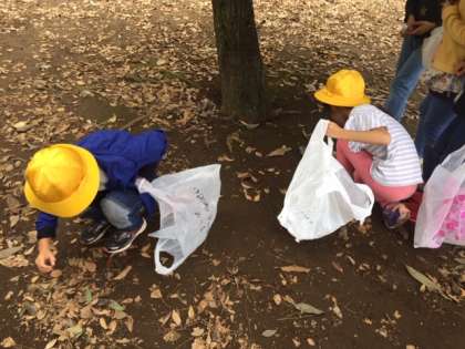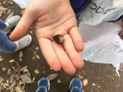 ドングリを拾ってます。