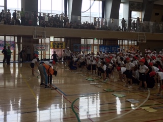 はじめの体操は世田谷小学校の児童が前に出て模範をしました。