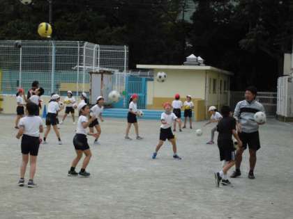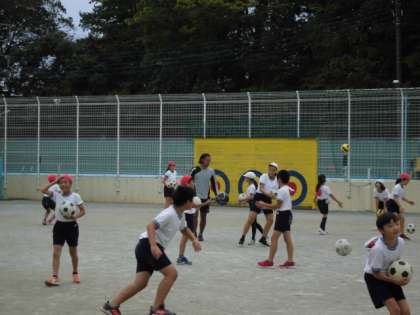 今日は5,6年生がベルディのサッカーコーチをゲストティーチャーに招き、楽しくサッカーをしました。最初から最後まで、たくさん動き回りました。