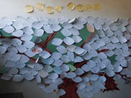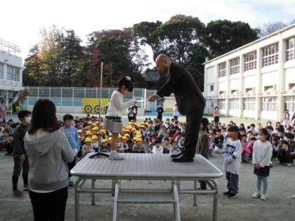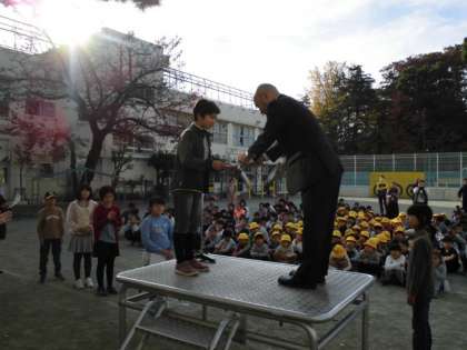 今日は全校朝会でみんなの作ったPOP王の表彰がありました。