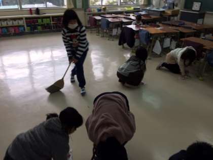 寒い日ですが、お昼の掃除の時間はみな一生懸命働いています。