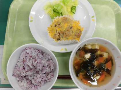 「ゆかりごはん、きりぼしだいこんのたまごやき、ひとしお野菜、すましじる、牛乳」です。