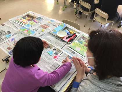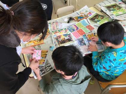 はさみを使って上手に切ったり、のりで貼ったりして仕上げました。