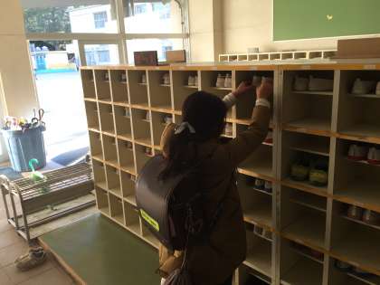 今日の夕方、BOPの帰りでしょうか、下駄箱のところに2年生の児童がいることに気付きました。何をしているのだろうと近付くと、なんとみんなの上履きをきれいにそろえているところだったのです。驚きました。なんとも言えないうれしい気持ちが湧き上がってきました。だれも見ていないところでよい行いを行う、なんて素晴らしいのだろうと思いました。「さよなら!」と元気なあいさつをして帰っていった後には、きれいに整えられた上履きたちがうれしそうに収まっていました。