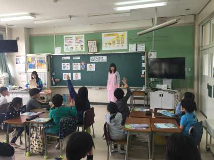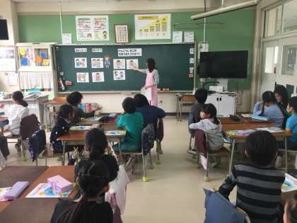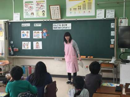 養護教諭が授業をしました。「健康にすごすには」です。手のひらの汚れをアルコールでふき取って調べたり、自分の生活を振り返って考えたりしました。黒板の掲示物も工夫してありました。
