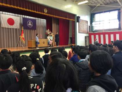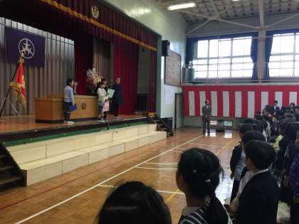 全校児童が384名になりました。児童代表の言葉は4年生と6年生です。昨年度できるようになったこと、進級して本年度がんばりたいことなどをしっかり発表しました。