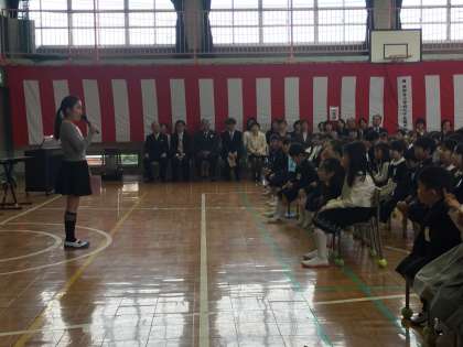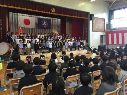 在校生代表で出席した6年生はさすが最高学年。よい緊張感をもって式に参加していました。2部では、6年生の代表児童が歓迎の言葉を述べた後、2年生児童が歓迎の出し物を披露しました。6年生児童の言葉は温かく思いやりに満ち、その語る姿勢も素晴らしかったです。2年生の歓迎の出し物は、呼びかけ、できるようになったこと、歌、合奏、全てに集中して真剣に取り組んでいました。1年生のみなさん、世田谷小学校で1年間学ぶとこんなにすてきな2年生になるのです。6年間学ぶとこんなにすてきな最高学年になるのです。さあ、がんばりましょう。