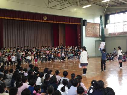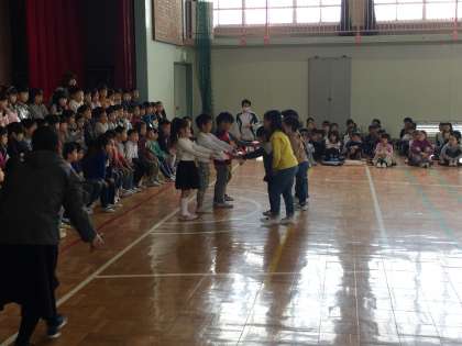 今朝は1年生を迎える会です。