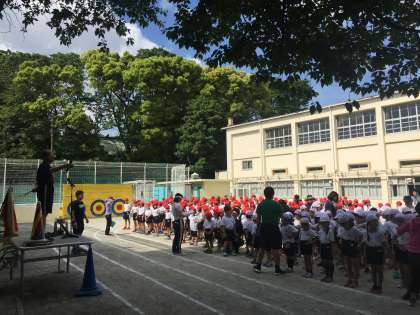 初めての全体練習です。。「100%の力でやろう!今やることにに集中しよう!」と練習開始前に子どもたちに話しました。