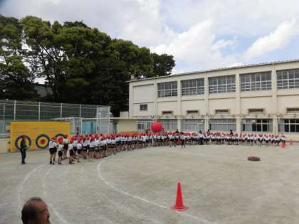 世田谷小学校では、全校児童競技に「大玉送り」があります。