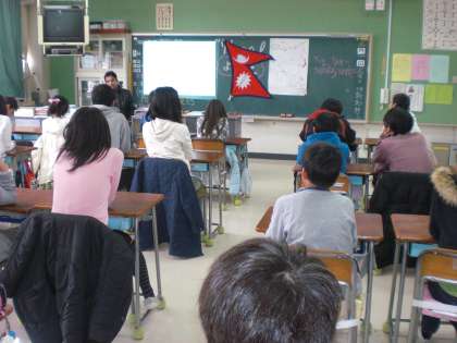 最後の6年生は、ネパールからの学生です。珍しい国旗の紹介や国土の地理など高学年向きの紹介をプレゼンテーションをしてくれました。