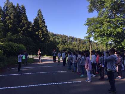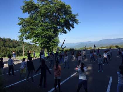 おはようございます。素晴らしい天気です。山々がきれいに見えます。よく眠ってみんな元気です。朝会を清々しい空気の中行いました。