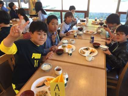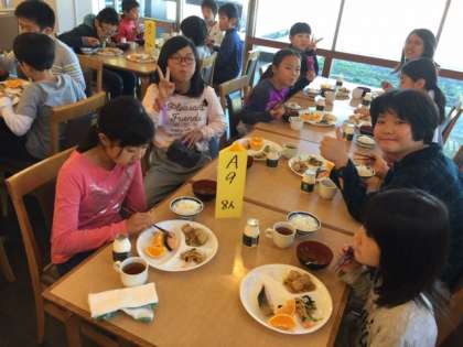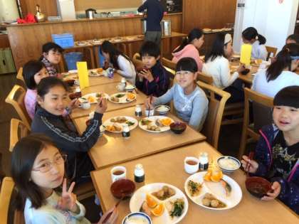 いただきます!朝ご飯です。和食です。よく食べてます。