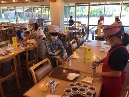 おはようございます。今日も晴天です。気持ちのいい朝です。朝会を終え、食事係は朝食の支度です。最終日も良い日になりそうです。