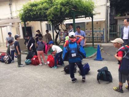 仲よし学級の4年生から6年生まで、みんなで出発です。楽しみです。