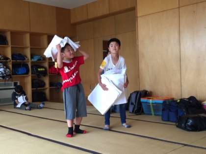 それぞれの係にはお仕事があります。シーツ係がみんなのシーツを運んできました。