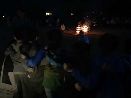 キャンプファイヤーも終わりです。みんなで肩を組んで、誰かが星を見てたを歌いました。