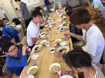 朝ごはんもしっかり食べました。ハイキングの準備に取りかかっています。