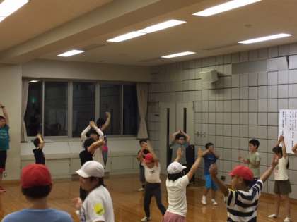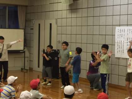 子ども会です。各学校の紹介をして、みんなでパプリカを踊りました。これから歌やゲームです。
