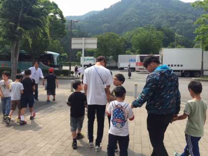 談合坂サービスエリアです。トイレ休憩です。バス車中はファインディングニモを見ています。