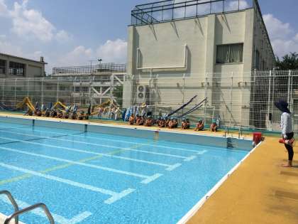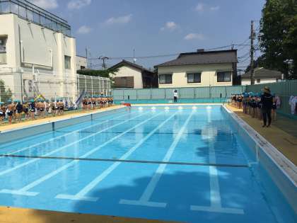 梅雨の晴れ間に、2年生がプールに入りました。ちょっとまだ水は冷たく感じるけれど、今年初めての水泳の学習を楽しみました。