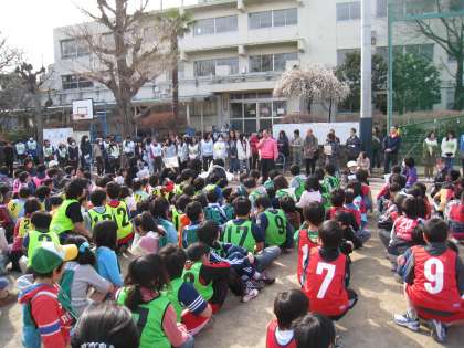 高学年チームと低学年チームに分かれて世田谷小、経堂小、笹原小、桜ケ丘小の4校の対抗戦でした。