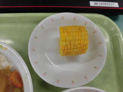 今日は、給食で使うとうもろこしの皮を食育活動として2年生にむいてもらいました。ひげまでしっかりとってとても上手にきれいむいてくれました。