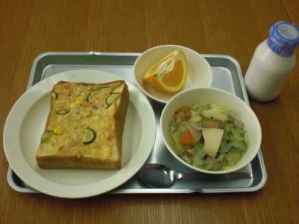 今日の給食は、ツナトースト・ポトフ・牛乳・くだもの(いよかん)です。