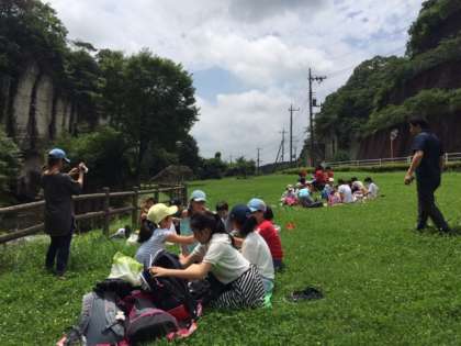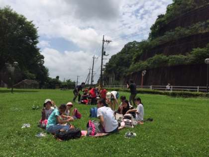 お弁当です。気持ちの良い芝生広場です。晴れてきました!