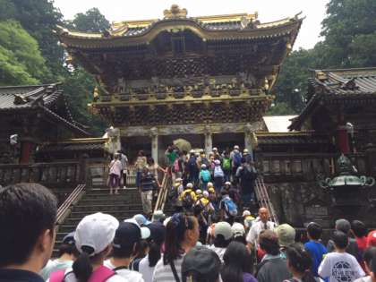 東照宮見学です。少し雨に降られました。今は明るくなってきています。陽明門まできました。