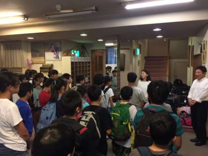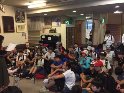 パークロッジ深山さんに着きました。雨が振りそうなので、宿のロビーで開園式をしていたら、外はどしゃ降りの雨。世田谷小6年生、ついてます。