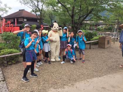 ニャンまげと記念撮影です。予定通りエドワンダーランドを後にしました。学校へ向かいます。