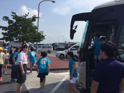 羽生パーキングエリアです。車内ではDVDを見ています。トイレ休憩ですが、外の暑さにみんなびっくり。予定通りです。