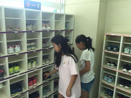 みんなの下駄箱がある昇降口の掃除の様子です。