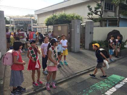 今週は4年生ががんばりました。大きな声で明るいあいさつ。自分も友達も元気にします。今週末は3連休です。また来週元気に会いましょう。
