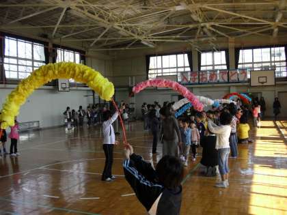 歓迎の演奏や歌、じゃんけん列車、6年生からのプレゼントなど、心のこもった楽しい会に、1年生も大喜びでした。
