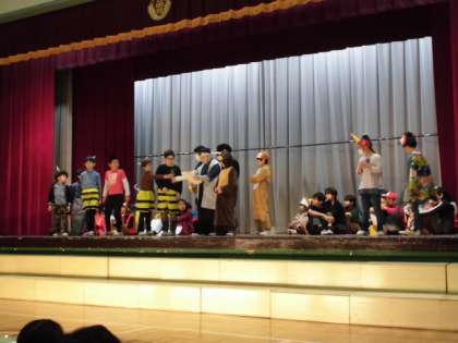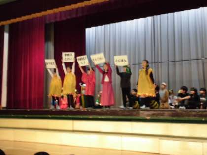 3年「どろぼう学校」、仲よし学級「ももたろう」の紹介です。