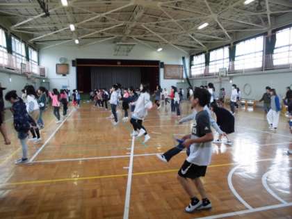 11月25日から12月6日まで、なわとび週間です。中休みに短なわの技を練習します。今日は前跳び、後ろ跳びの練習をしました。