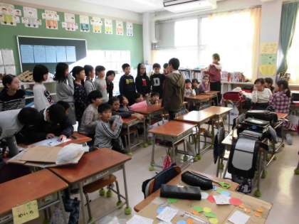 今日は3年生がクラブ見学をしました。見学をして、来年どのクラブに入りたいかを考えます。各クラブでは、上級生からどんな活動をしているのかの説明がありました。写真はスポーツクラブとボードゲームクラブの様子です。