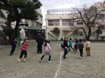 今朝は3年生が長縄跳びに取り組んでいました。リズムよく間隔をあけずに跳んでいくことがこつです。縄跳び鵜集会の記録更新に向けてみんながんばっています。